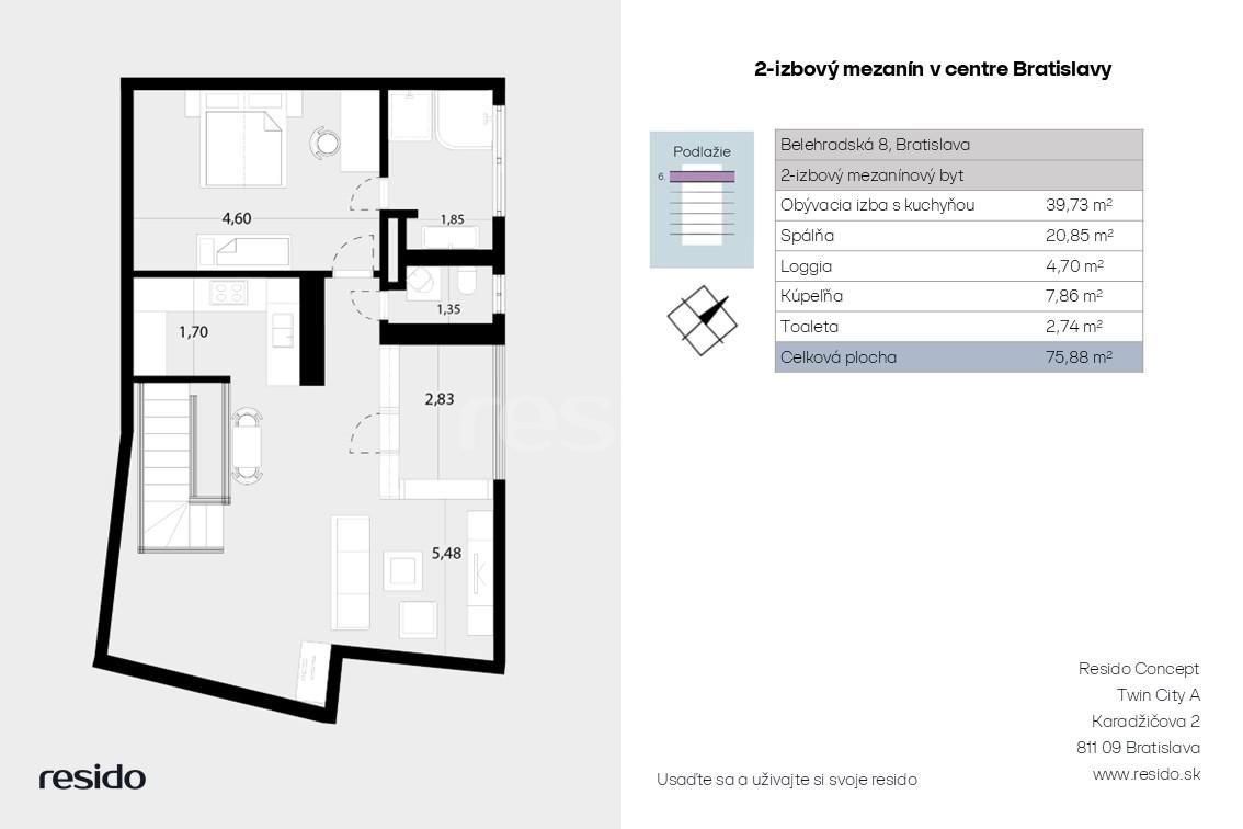 Resido Concept Vám ponúka na predaj príjemne a prakticky zariadený 2-izbový mezanínový byt s balkónom v jednej z najvyhľadávanejších lokalít Bratislavy – na Belehradskej ulici.