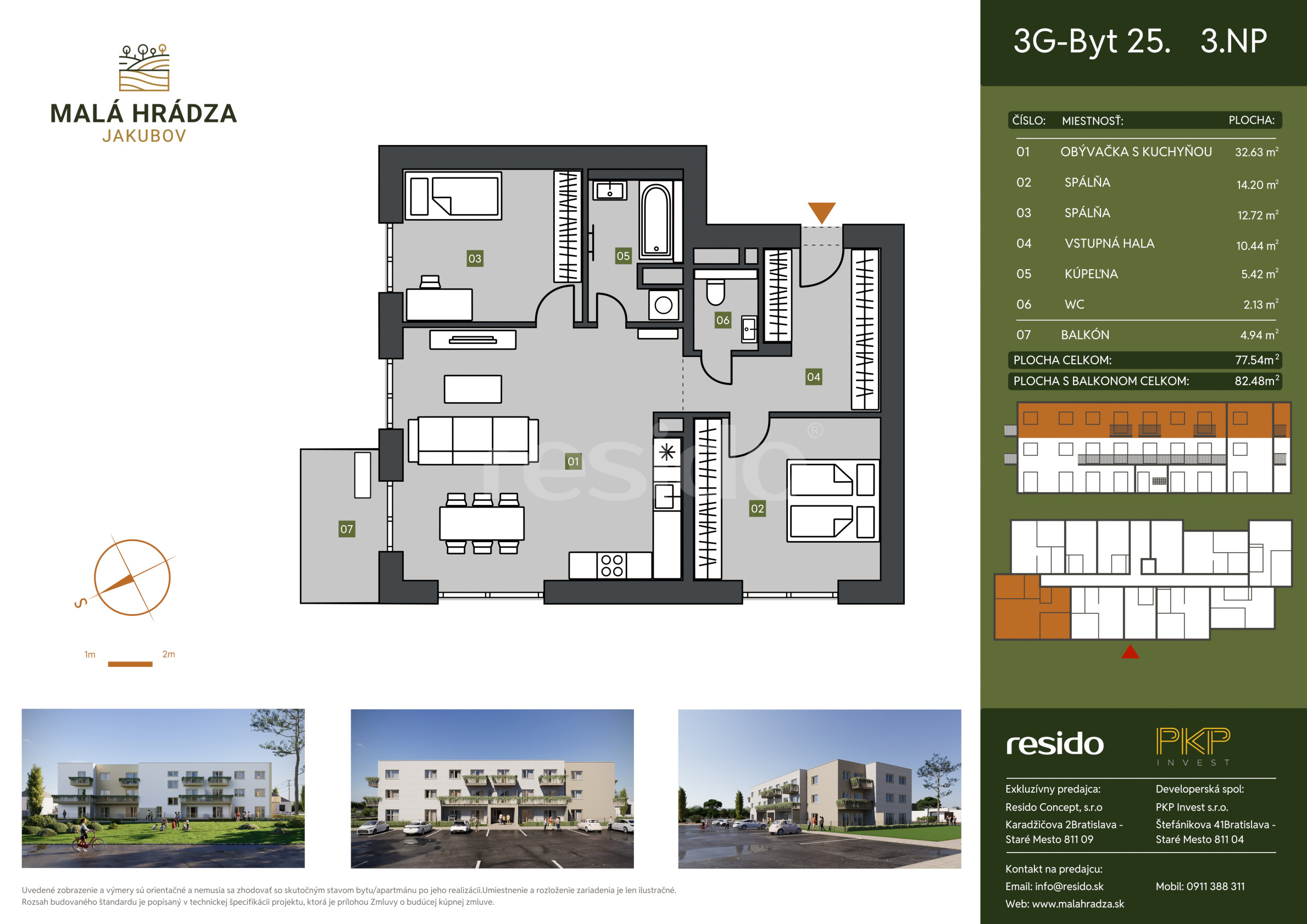 Resido Concept Vám ponúka na predaj moderné 3 izbový byt s balkónom v novom rezidenčnom projekte Malá Hrádza v obci Jakubov len 30 minút od Bratislavy.