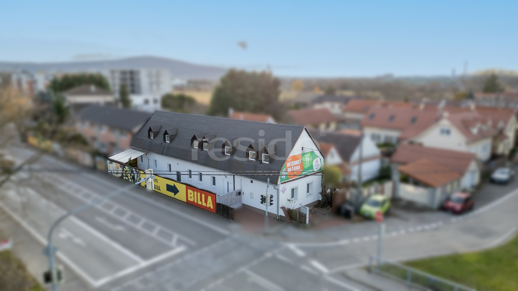 • Súčasťou nehnuteľnosti je aj stabilný príjem z exteriérovej reklamy umiestnenej na plote a fasáde – ide o bonusový pasívny príjem, ktorý investor dostáva automaticky.