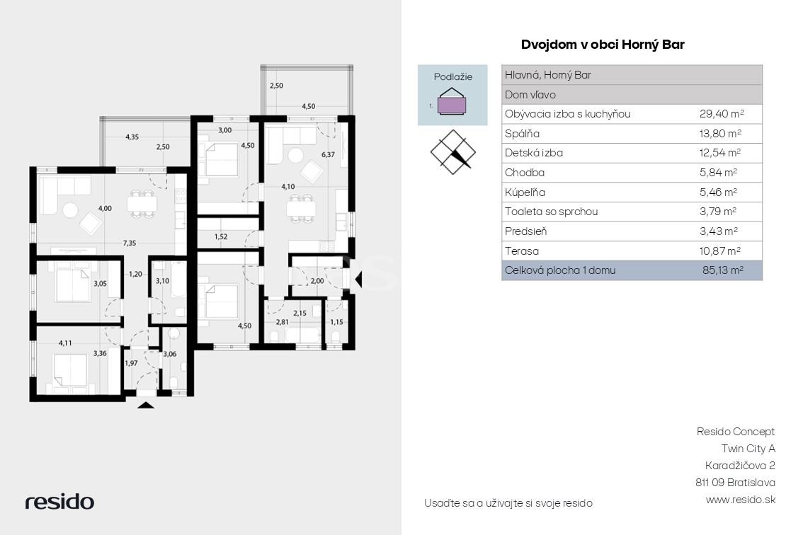 Resido Concept Vám ponúka na predaj moderný 3-izbový rodinný dom v dvojdome, situovaný v tichej a príjemnej štvrti priamo pri centre obce Horný Bar. Novostavba bola vytvorená s dôrazom na kvalitu, komfort a dlhodobo nízke prevádzkové náklady.