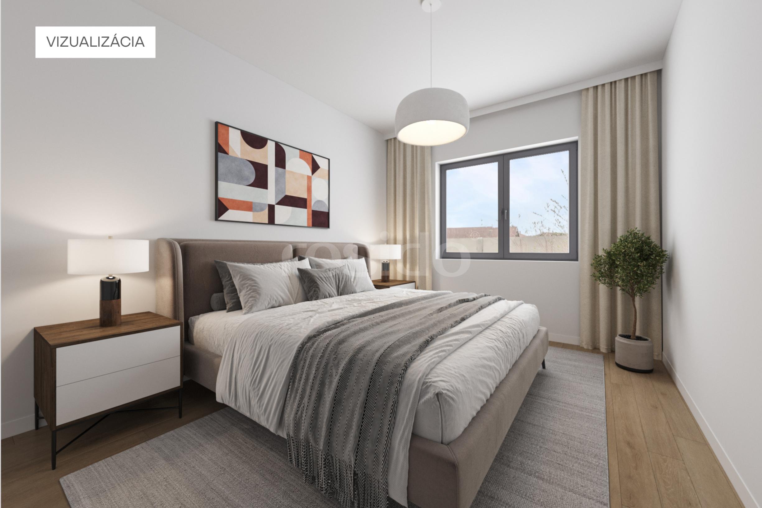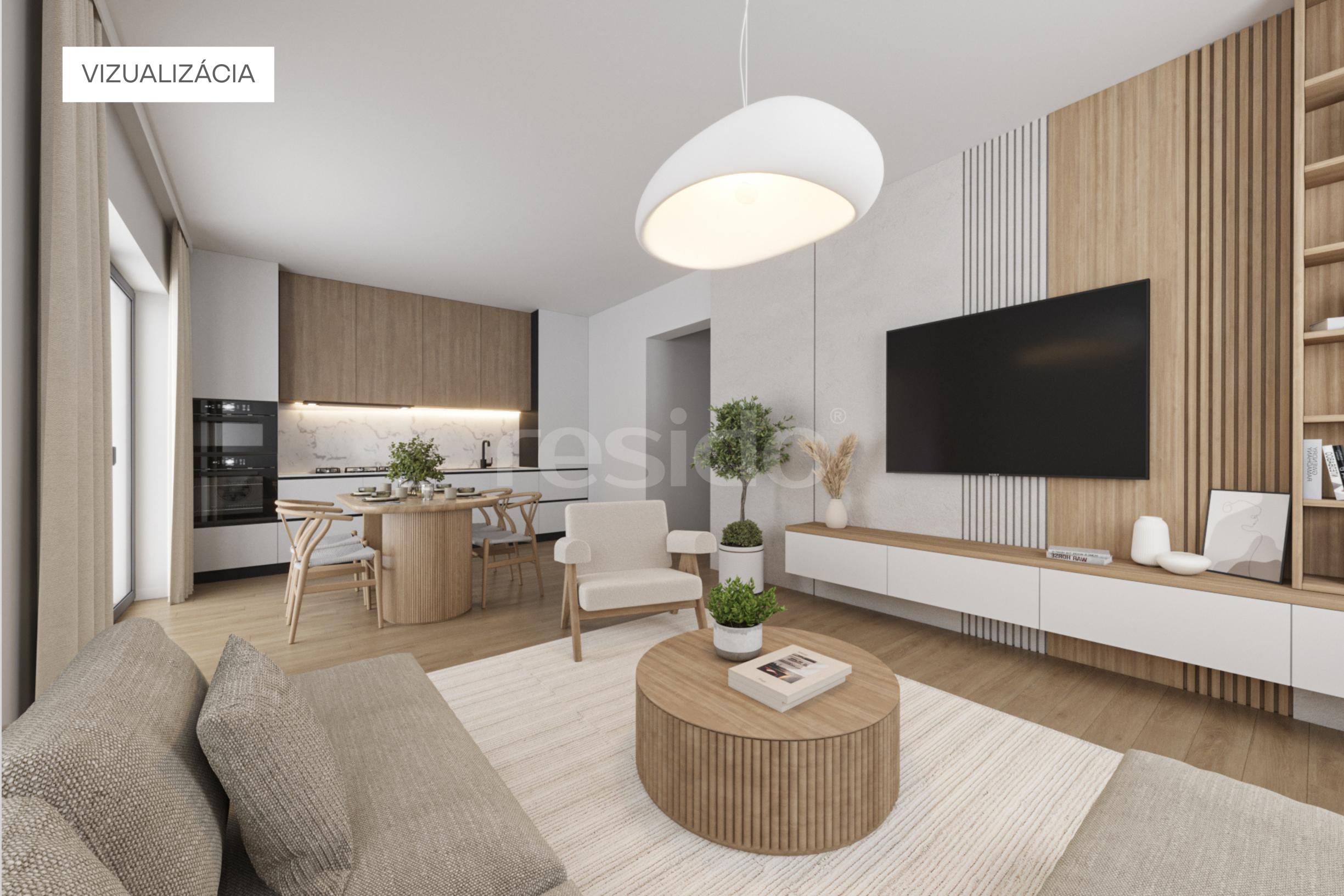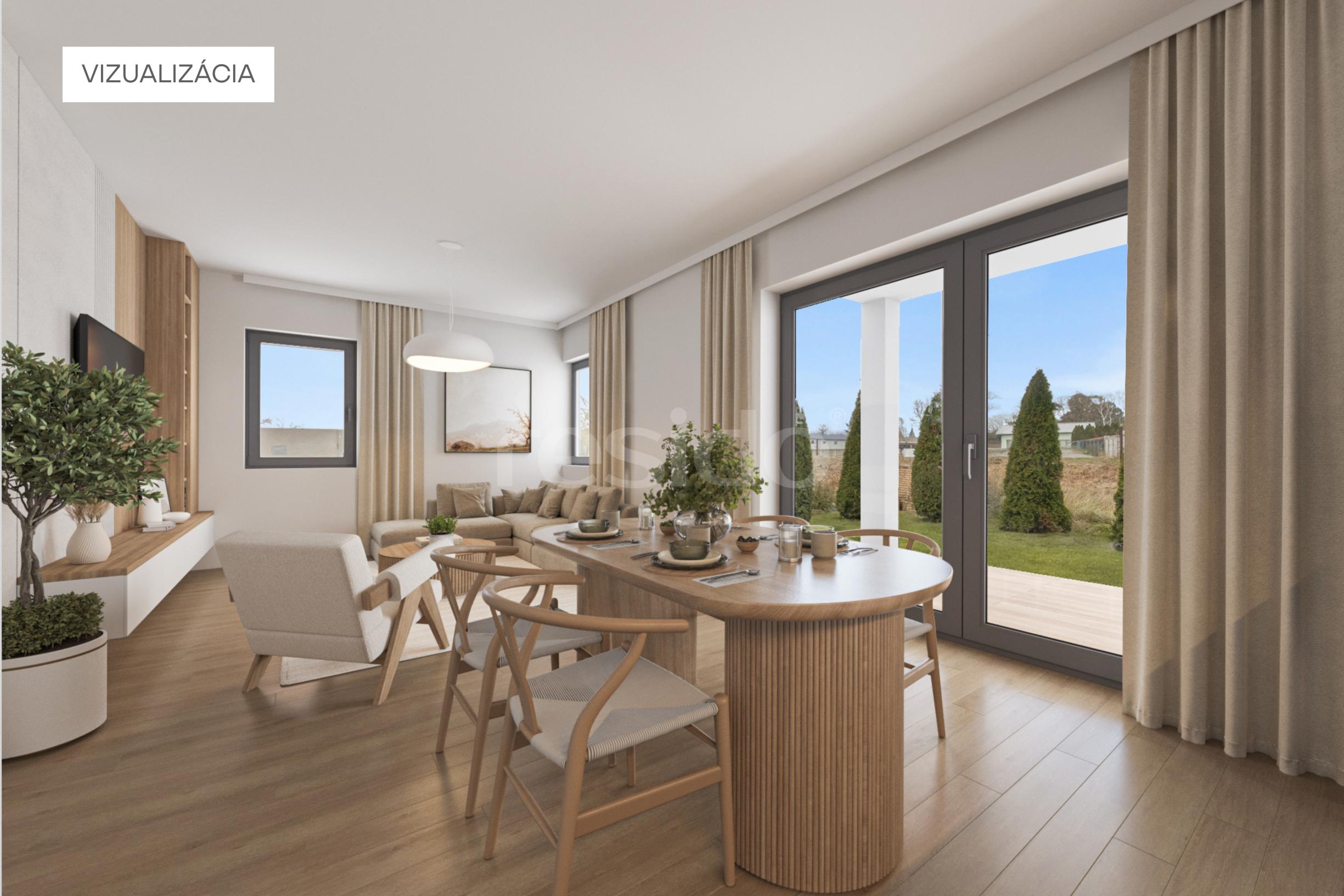 (obývacia izba s výstupom na terasu, kuchynský priestor, dve samostatné spálne, kúpeľňa)